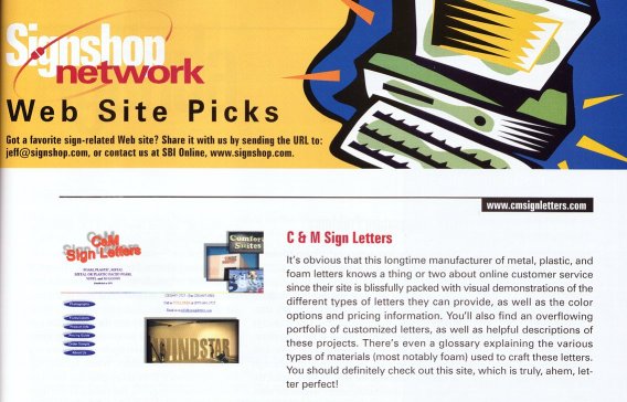 "It's obvious that this longtime manufacturer of metal, plastic, and foam letters knows a thing or two about online customer service since this site is blissfully packed with visual demonstrations of the different types of letters they can provide, as well as the color options and pricing information. You'll also find an overflowing portfolio of customized letters, as well as helpful descriptions of these projects. There's even a glossary explaining the various types of materials (most notably foam) used to craft these letters. You should definitely check out this site, which is truly , ahem, letter perfect!"